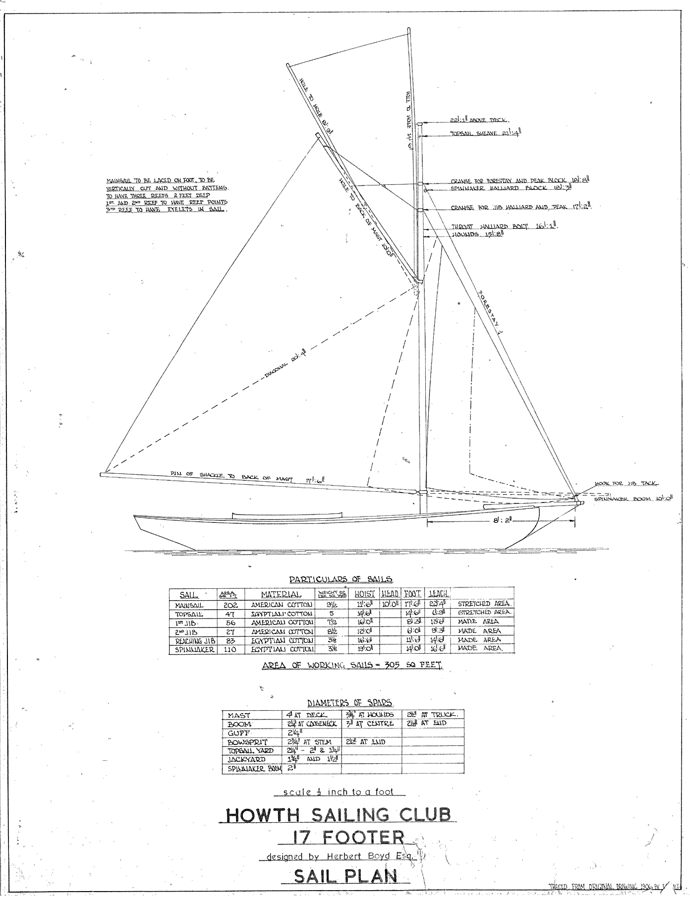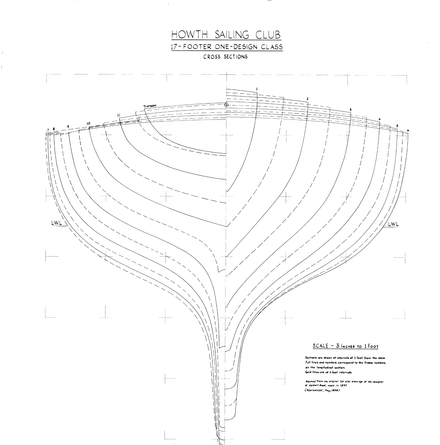 The plans of the Howth 17 class were originally designed by W. Herbert Boyd in 1897 for Howth Sailing Club. In 1907 the class was also adopted by Dublin Bay Sailing Club, when agreed class rules were finalised. However, it was not until 1921 that these plans were first published in the Journal of the Humber Yawl Club in Yorkshire. By that time, the designer had succeeded his father and assumed the title of Sir Walter H. Boyd.