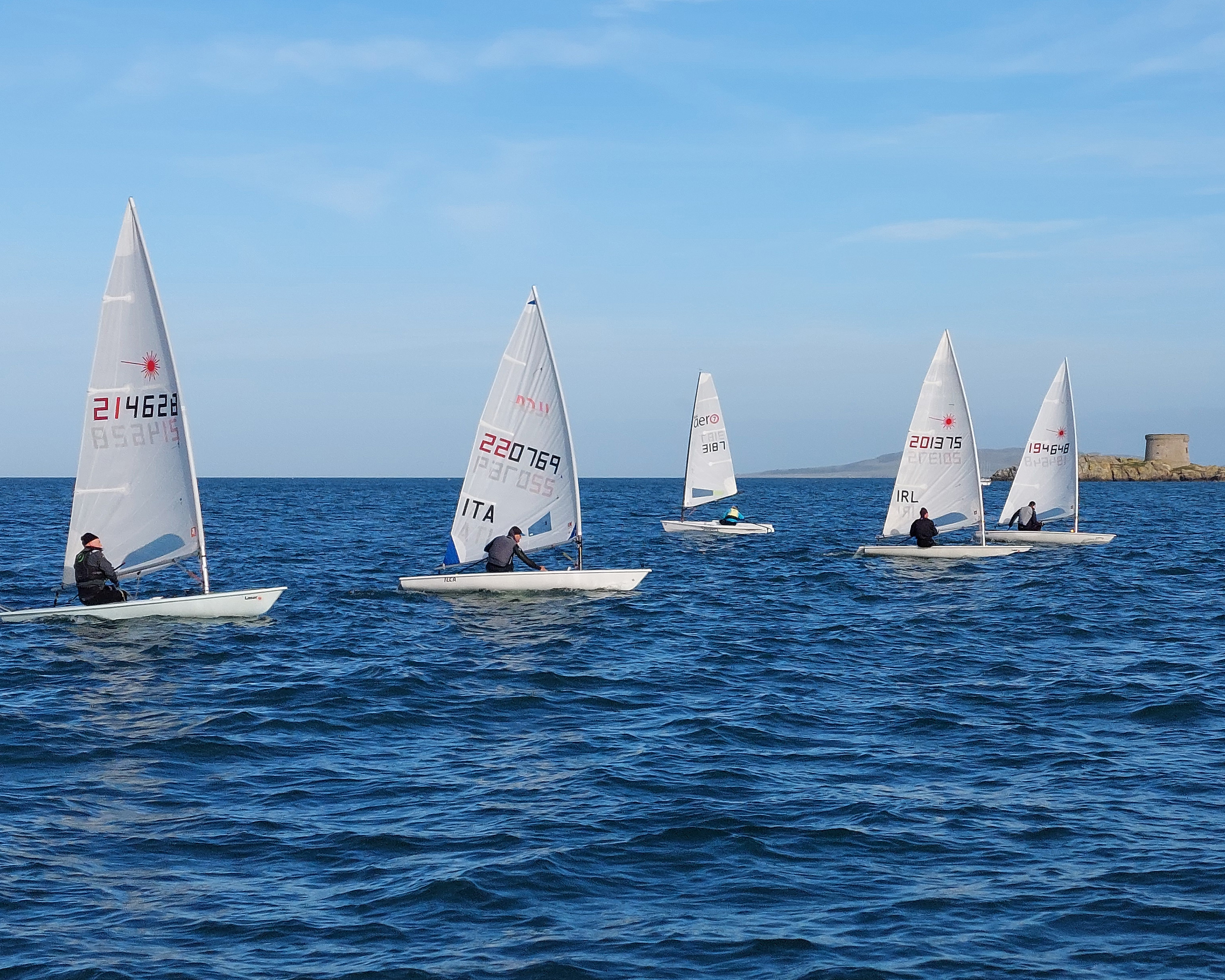 The ILCA 6s saw a new race winner in HYC’s Luke Turvey, who walked away today with two 1st places, beating not only all the ILCA 6s but holding a lead on many of the ILCA 7s for a lot of the racing. Series leader Marco Sorgassi settled for a 2nd and a 3rd, but still has a convincing lead in the overall series. MYC’s Daragh Peelo and Rush’s Daniel O’Hare took the remainder of the podium places for the day’s racing. The fleet was delighted to see the return of Peter Hassett in his first racing of 2023.