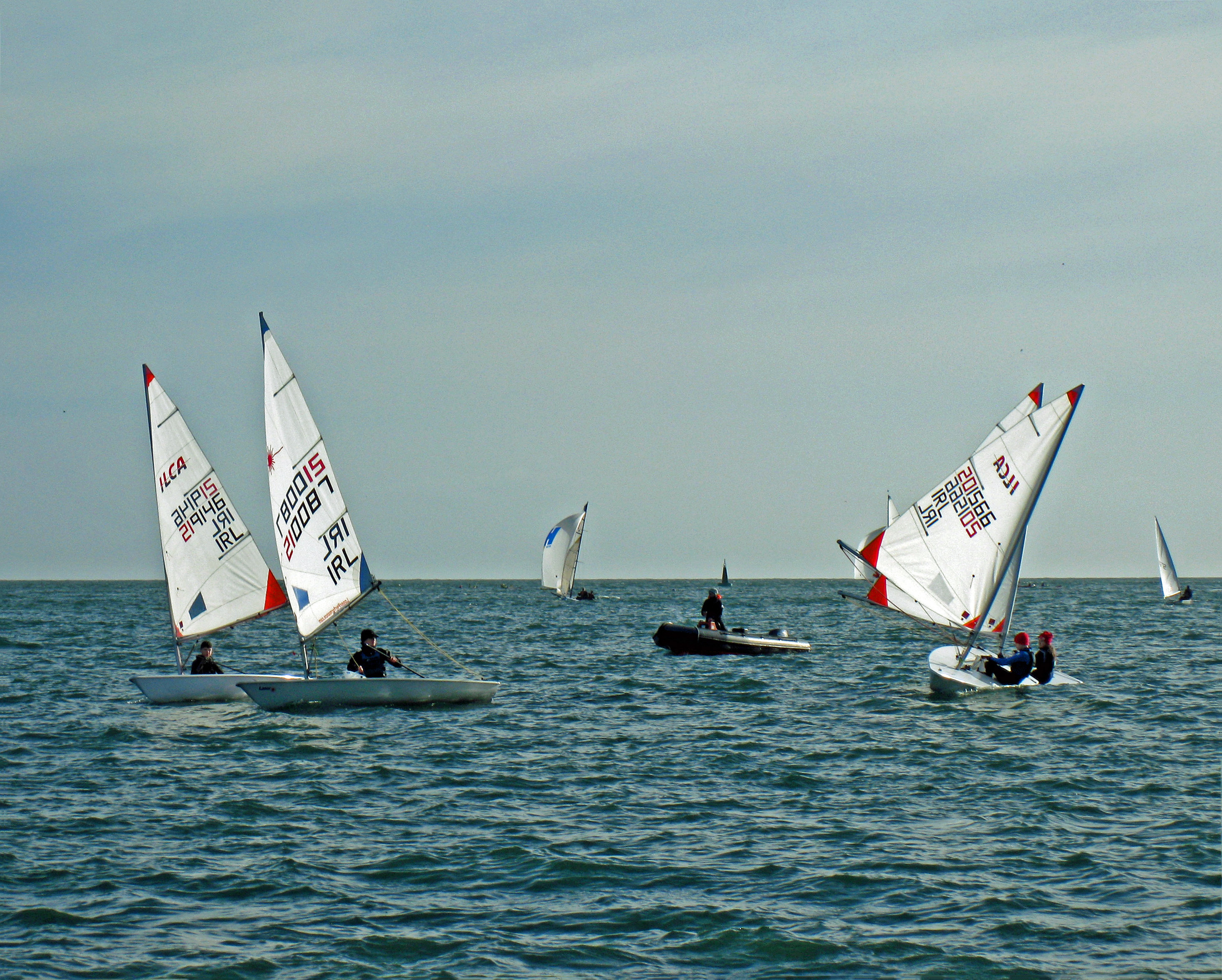 The ILCA 4s, most of them fresh from a pre-racing coaching session from HYC’s Aoife Hopkins, were eager to show their new skills in the light weather. They also saw a new race winner in HYC’s Thea Daly, who took home 1st in race 2. Charlie Keating, fresh from winning two races last week, took 1st in race 1, but he, along with three other ILCA 4s, fell victim to the U flag in race 2. MYC’s Glenda Gallagher and Rush’s Aisling Kelly clinched the rest of the podium places on the day in two tight races. Aisling Kelly still leads the series overall with 19 points after 10 races, but Riaghan Boardman and Viktor Samoilovs aren’t far behind.