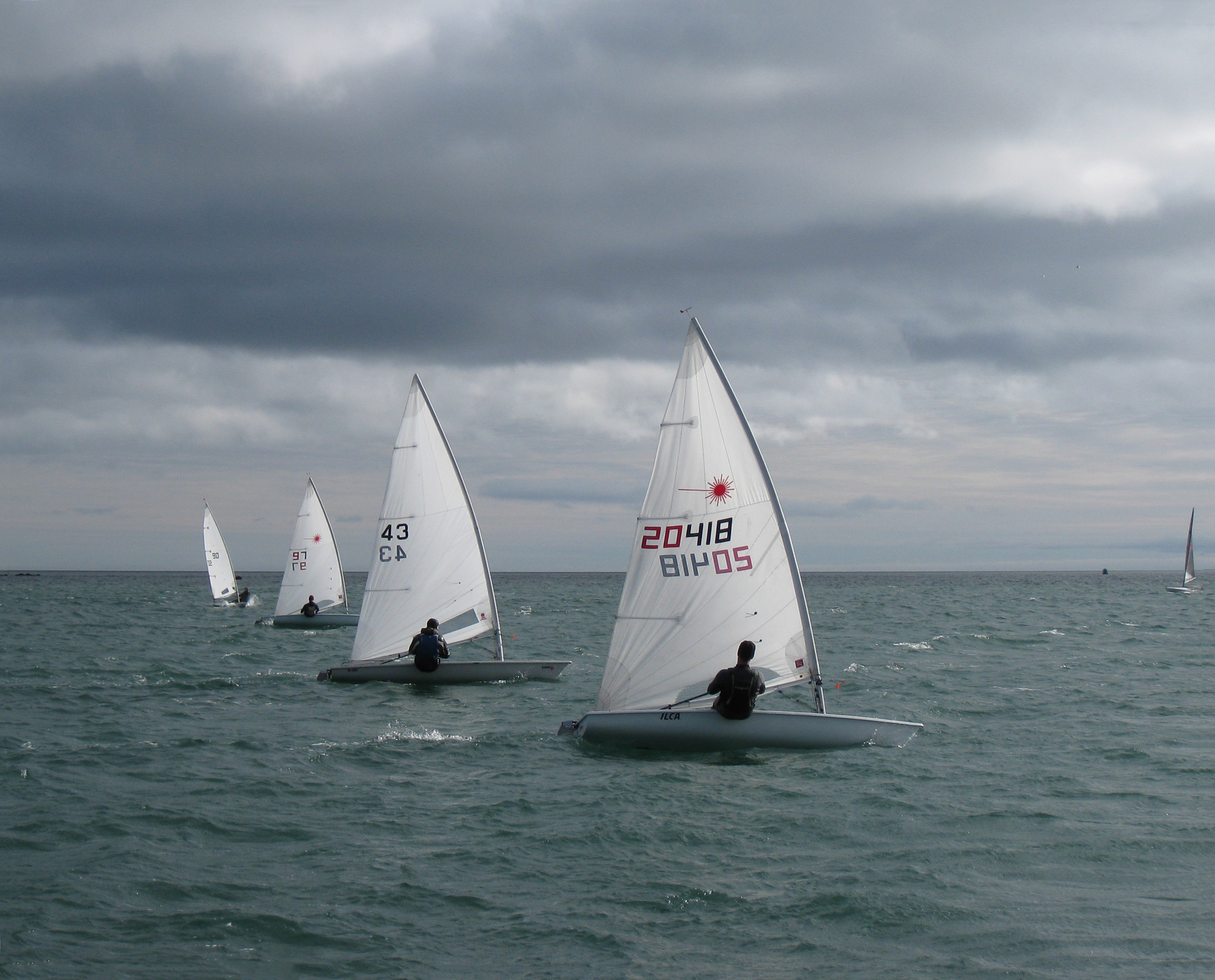 The ILCA 7s had some of their closest racing yet. In race 1, there was stiff competition to start at the pin end, however with the ebb tide pushing everyone towards it, Ronan Wallace ended up striking the pin mark as the start gun went. As he did his 360 penalty, the rest of the fleet moved on up the beat. Conor Murphy, Dan O’Connell and Rory Lynch had a very tight battle around the first two laps of the course; however on the third lap, while those three fought it out with each other, Wallace sped cleanly up the beat and got right back in with the pack. By the finish line, Wallace had stolen 1st, Lynch 2nd and O’Connell 3rd. After a 35-minute race, only a few boat-lengths separated the top four. Dave Kirwan was unfortunate to be called OCS, but recovered well in race 2 to take 5th, after the same 1st to 4th places as in race 1. Wallace leads the series overall, but is tied on points with O’Connell. Rory Lynch follows 5 points behind in 3rd, while Conor Murphy and Oisin Hughes fight it out for 4th with only 2 points between them.