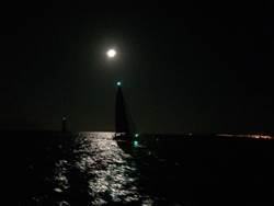 The night sky was clear and the background of Bray, Greystones and Wicklow could be easily seen. Shooting stars were everywhere when the fleet rounded North India. After the leading boats had rounded North India, the remaining boats clustered while rounding the mark in the strong tide.