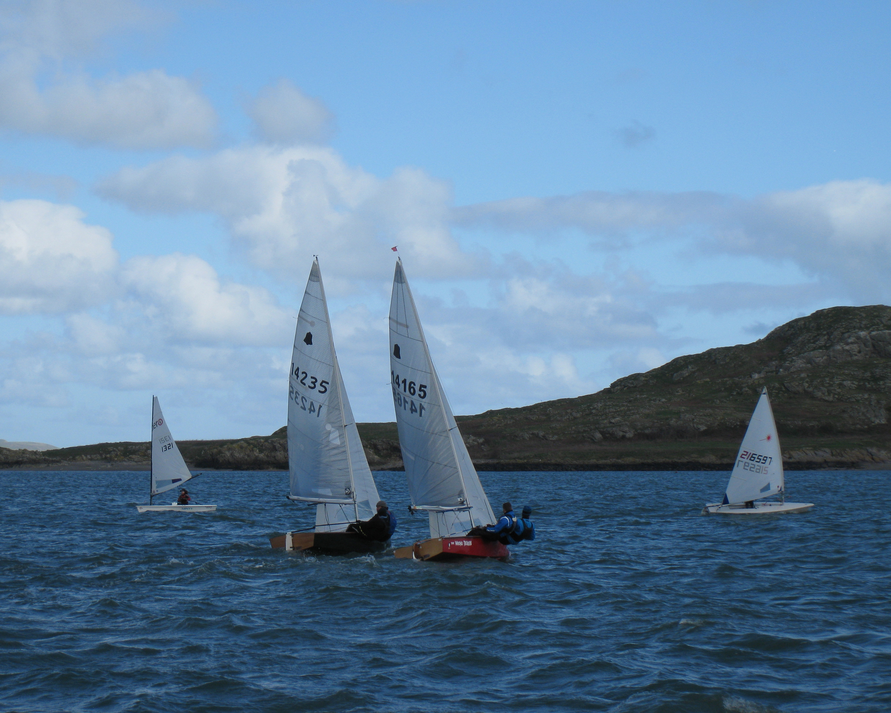 The PY fleet had a range of classes making up the 8 boats on the water today, and the results show an apparent preference that the different classes have for the different courses. The fast reaches of the triangle favour the RS Aeros, leading to Daragh Sheridan’s win in race 1, followed by the GP 14s of Alan Blay and Conor Twohig. Race 2’s windward-leeward course favoured the GP14s, with their symmetrical kites giving them the boost they needed downwind to overcome Sheridan’s Aero. Blay took first, followed by fellow GP14s Conor Twohig and Peter Boyle. Mike Evans was joined by HYC’s own ILCA ace Ewan McMahon for the day, but they couldn’t break into the podium places in the handicapped fleet. Sheridan has a safe lead on the series heading into the final weekend of racing, while Blay has moved into 2nd overall, followed by Jeremy Beshoff’s B14 in 3rd.