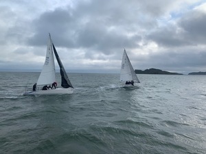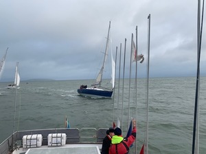 Despite the iffy forecast we managed to get the fleet around a short course with westerly winds averaging 18/20 knots and a max showing on the Committee boat of 26 knots. A nice flat sea took some of the pressure off every one including Committee boat crew. Following last week’s abortive attempt it was great to get everyone away with clean starts, in fact I think some boats were not sure which start they were going for, judging the variation of starts, maybe I set too long a line!!
