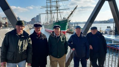 DAY 3 - Free day. ROMEOS had a lot to choose, Submarine, Maritime Museum, Bus Tour and Water Tour of Hamburg, all spectacular. Luckily the weather was brilliant, sunny and clear. ROMEOS dispersed to their choice entertainment. One of the displays was the 3 mast museum schooner “Rickmer Rickmers” which was visited by Chief ROMEO and Patrick Smyth, and motley others. After the schooner visit we were on our way to the M.V. Cap Santiago a museum refrigerated ship.