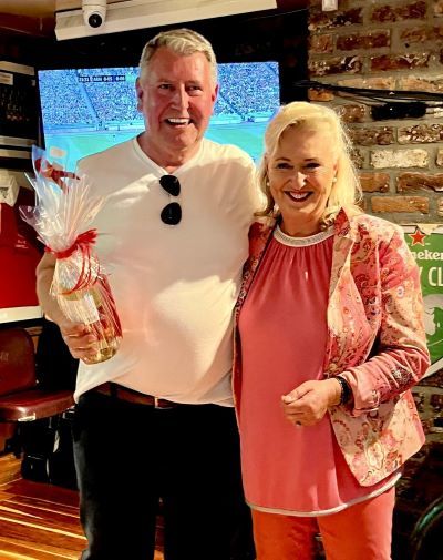 Windsor and Steffi are presented with the Overall Trophy by event organiser Maureen Muir.