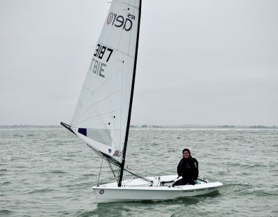 14 boats were at the start box in a very grey autumnal day with winds at 11-13 knots from the north east and gust topping at 17.3knots. Three short and snappy windward-leeward races were set by Race Officer, Ronan MacDonell, on the Committee boat with Pat McCaughey and Karolina Kernan.