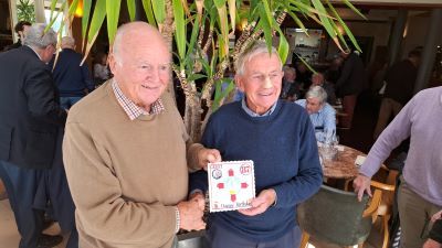 When the lunch was finished and everybody was happy. The Chief Romeo took to the floor and welcomed everyone to Rosslare, and thanked to staff for the beautiful meal. He announced that there was a birthday boy in our midst. A hand crafted, unique birthday card, which was signed by all ROMEOS was presented to birthday boy; Gerry Sargent, who had reached 87 years. There was a good wish toast and a round of applause for Gerry.