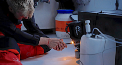 Typically, Ollie will consume between 4,500 – 6,000 kcal per day. Over the 90 days of racing, this is approximately 472,500 kcal, and he will still lose weight. Of course, it is crucial for Ollie to have the right food with him; once the race starts there is no option to stop and ‘top-up’ supplies. On board, he has extremely limited cooking facilities and no refrigeration. After the first few days he is dependent on freeze-dried meals and pre-packed snacks which provide a high energy content combined with essential nutrients. His entire “kitchen’ consists of a single jet-boil, a thermos mug and a long-handled spoon! He uses the gas-powered “jet-boil” to heat water which is used to make hot drinks and reconstitute the freeze-dried meals.