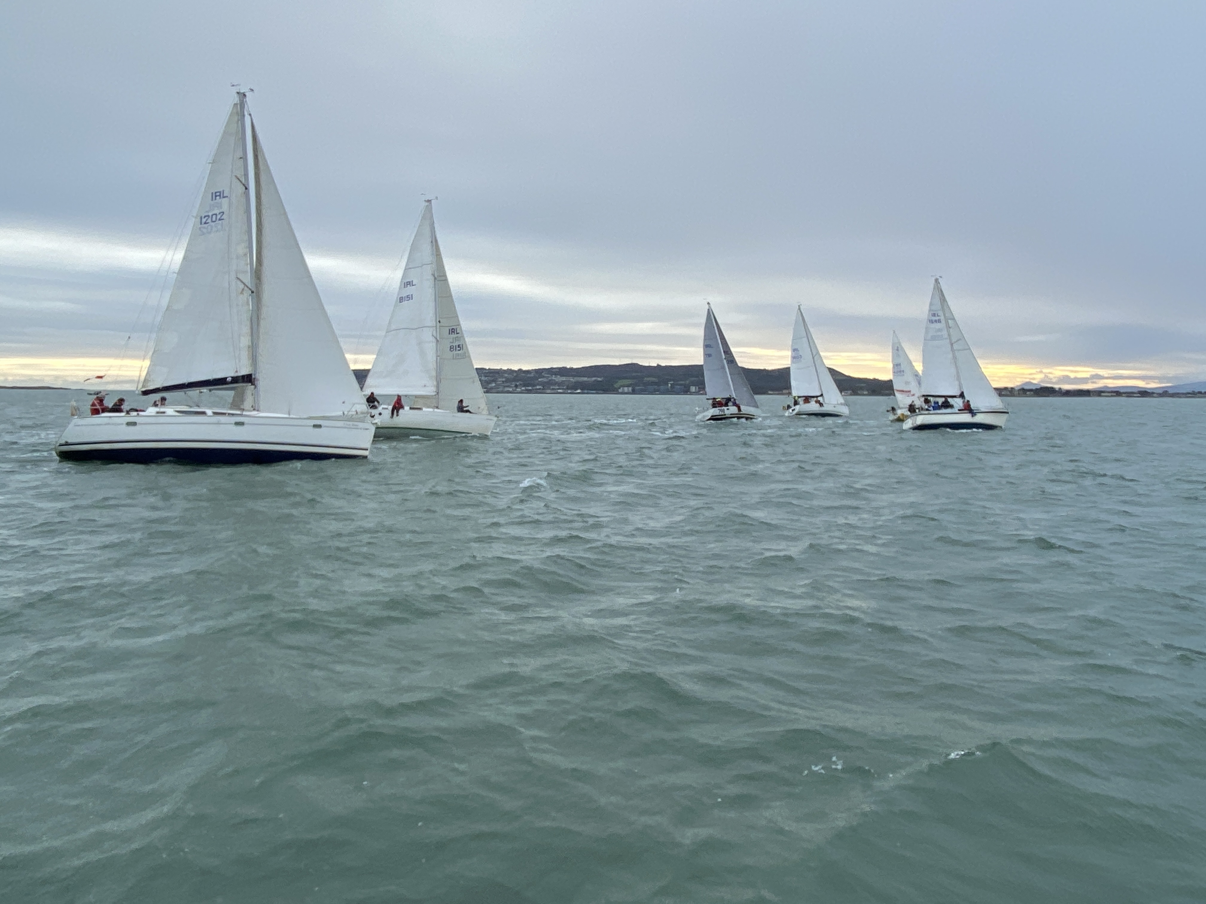 On the first start a class 3 boat managed to take the pin end buoy for a trip along the line so the class 1 and 2 had a longer than usual start line!