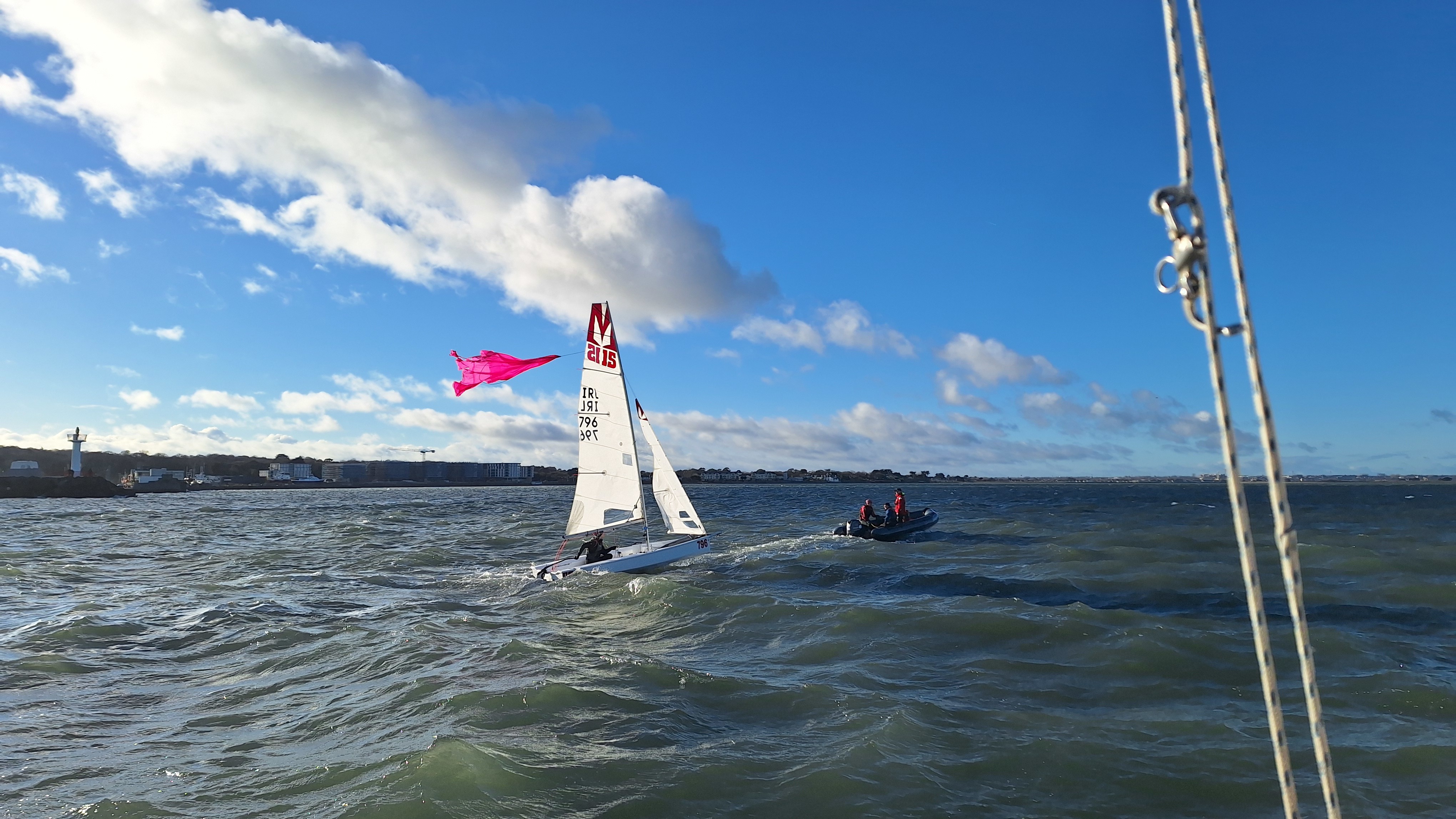 Line honours went to Daragh Sheridan in the Aero, followed closely by the Melges, the race having been shortened at the weather mark on the third round much to the relief of all. Full marks to Evan and the safety boat crew team who managed rescue particularly well in tricky conditions.