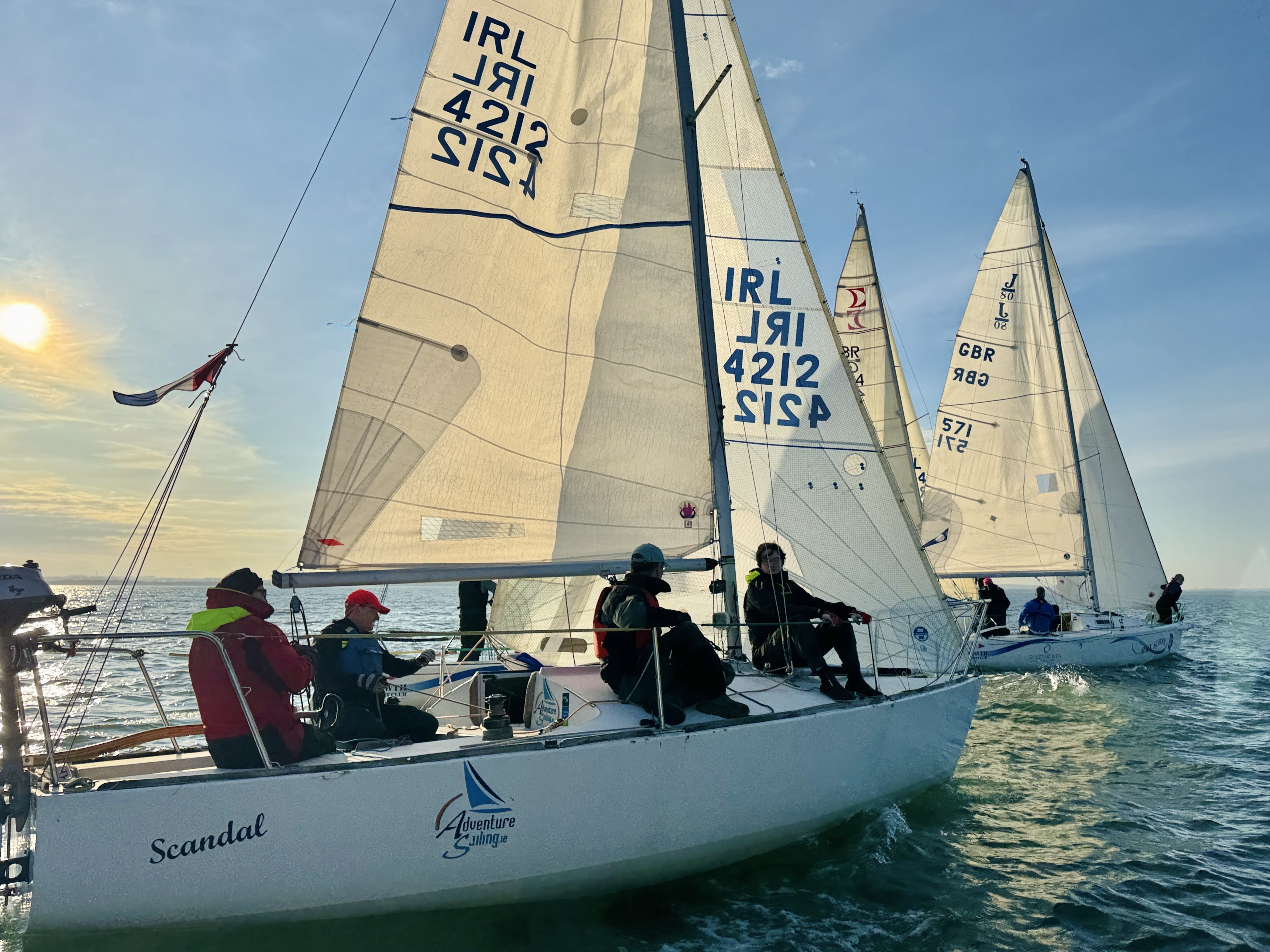 The first Wednesday night of the Keelboat Club Racing season kicked off on a glorious sunny evening with a light northeasterly breeze of 5-10 knots. Eighteen boats made it to the line, ready to shake off the winter cobwebs. The breeze was light at the start but steady enough to get everyone around the course, however as it dropped away the course was shortened to ensure everyone got to the bar before the dark.