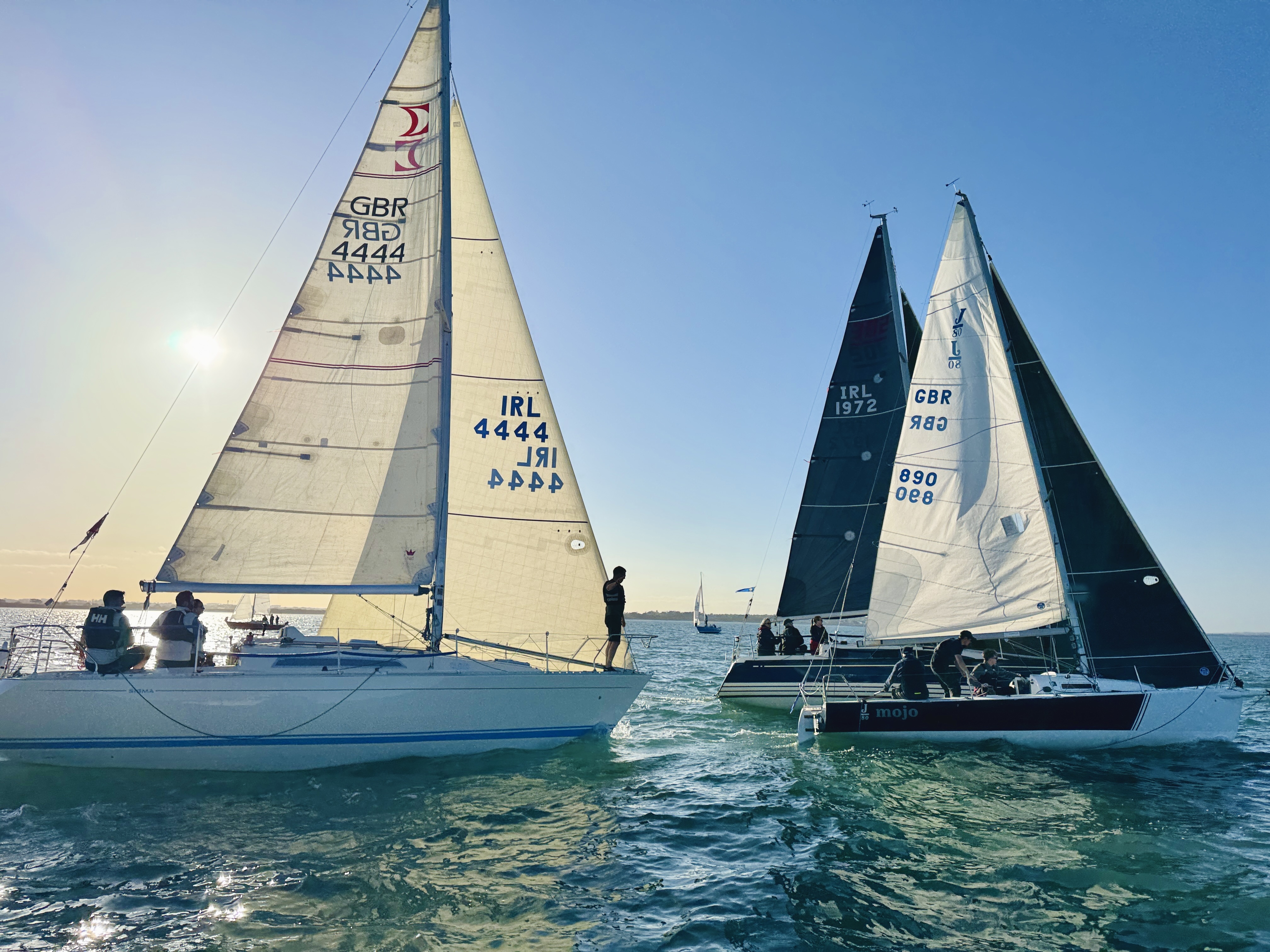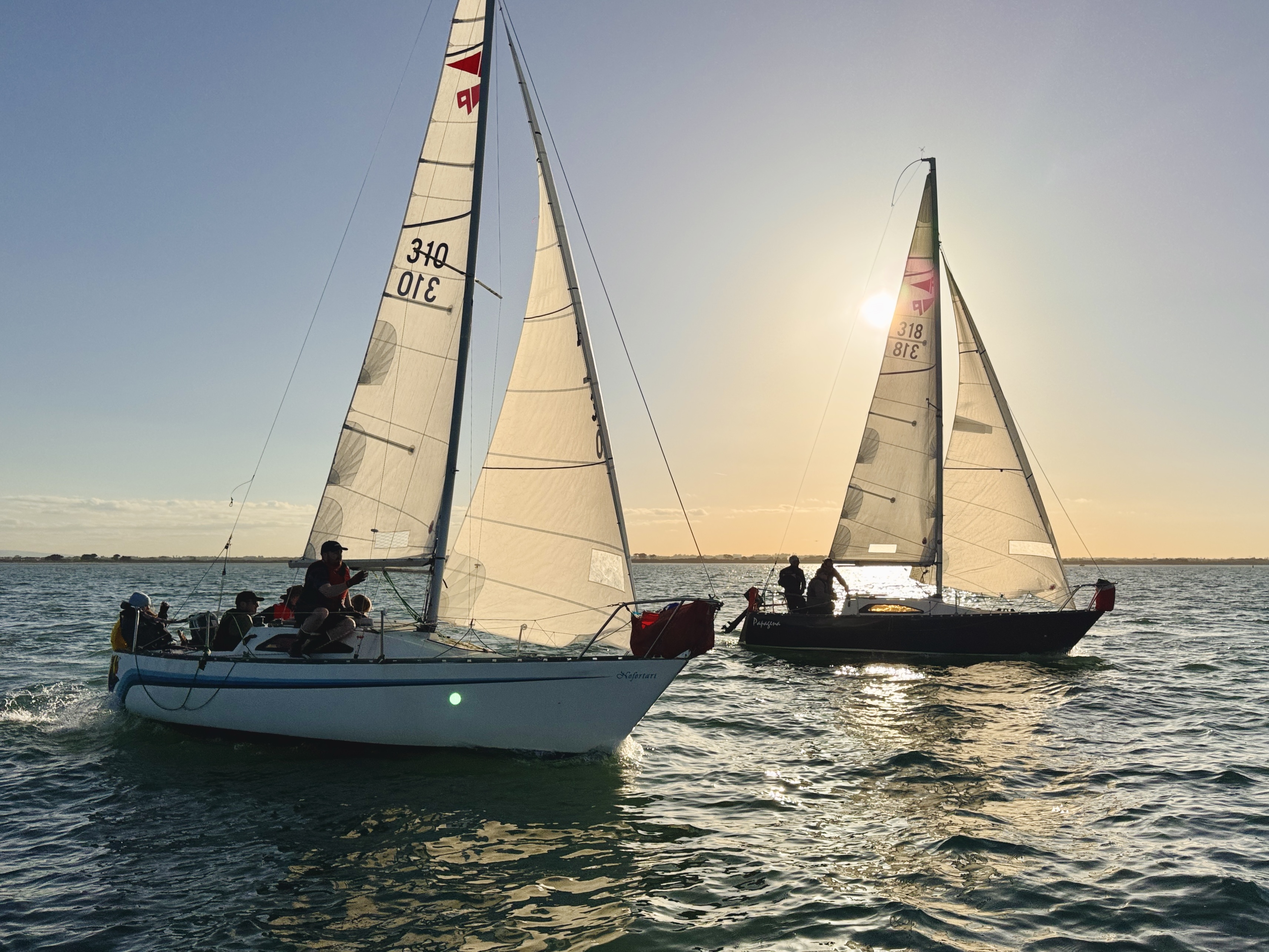 As the winds were light a small number of boats abandoned racing but all others finished within the time. As the golden sun set the Race Committee, its Ribs and the last Puppeteer were treated to a friendly visit by a pod of about five dolphins, calling to each other as we left the finishing area close to the Island Mark.