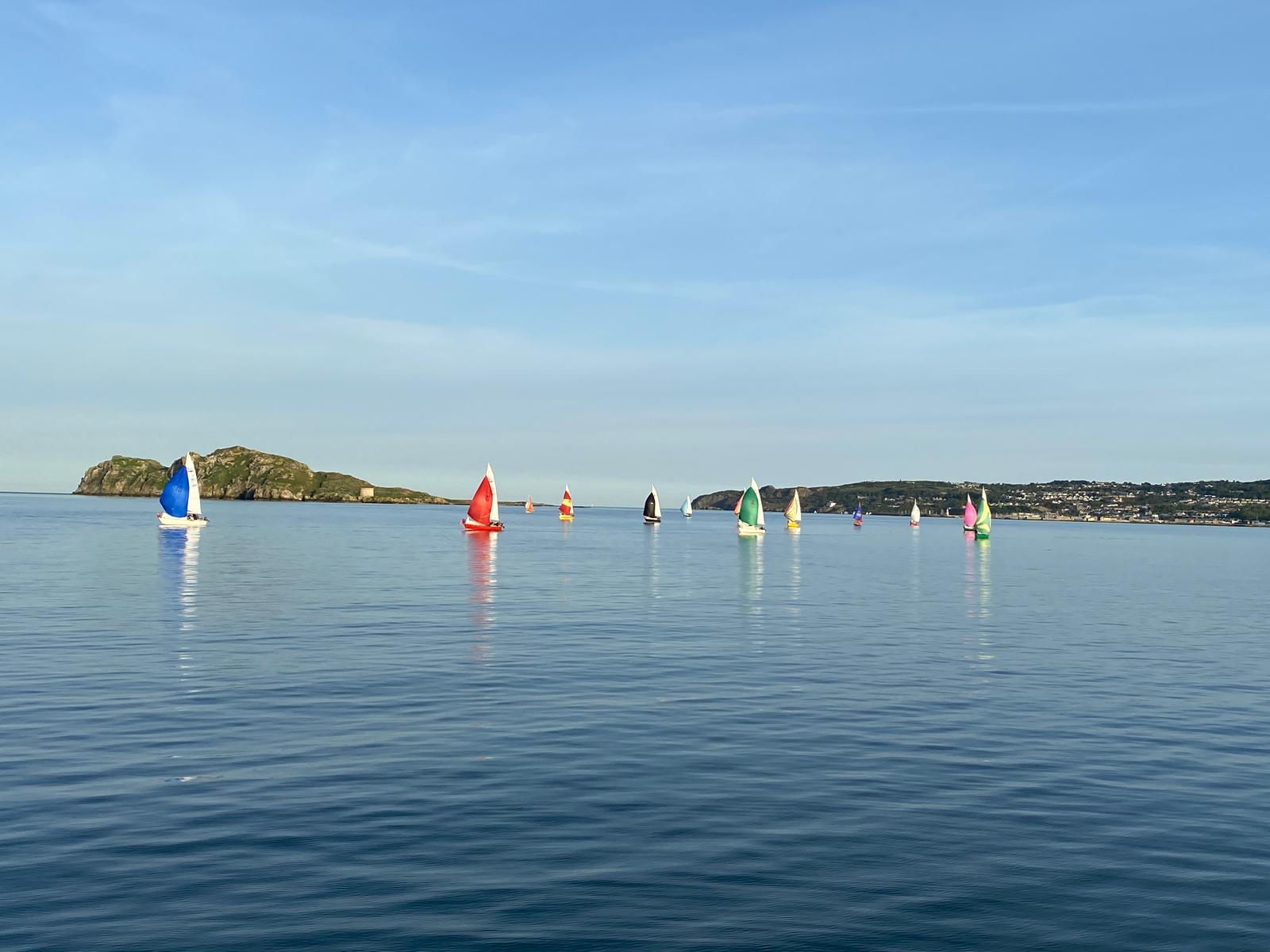 A fleet of 20 boats turned out for Tuesday evening’s racing - 16 Puppeteer 22s and 4 Squibs. Conditions were gentle, with a south-easterly wind ranging from 1 to 5 knots and a glassy flat sea.