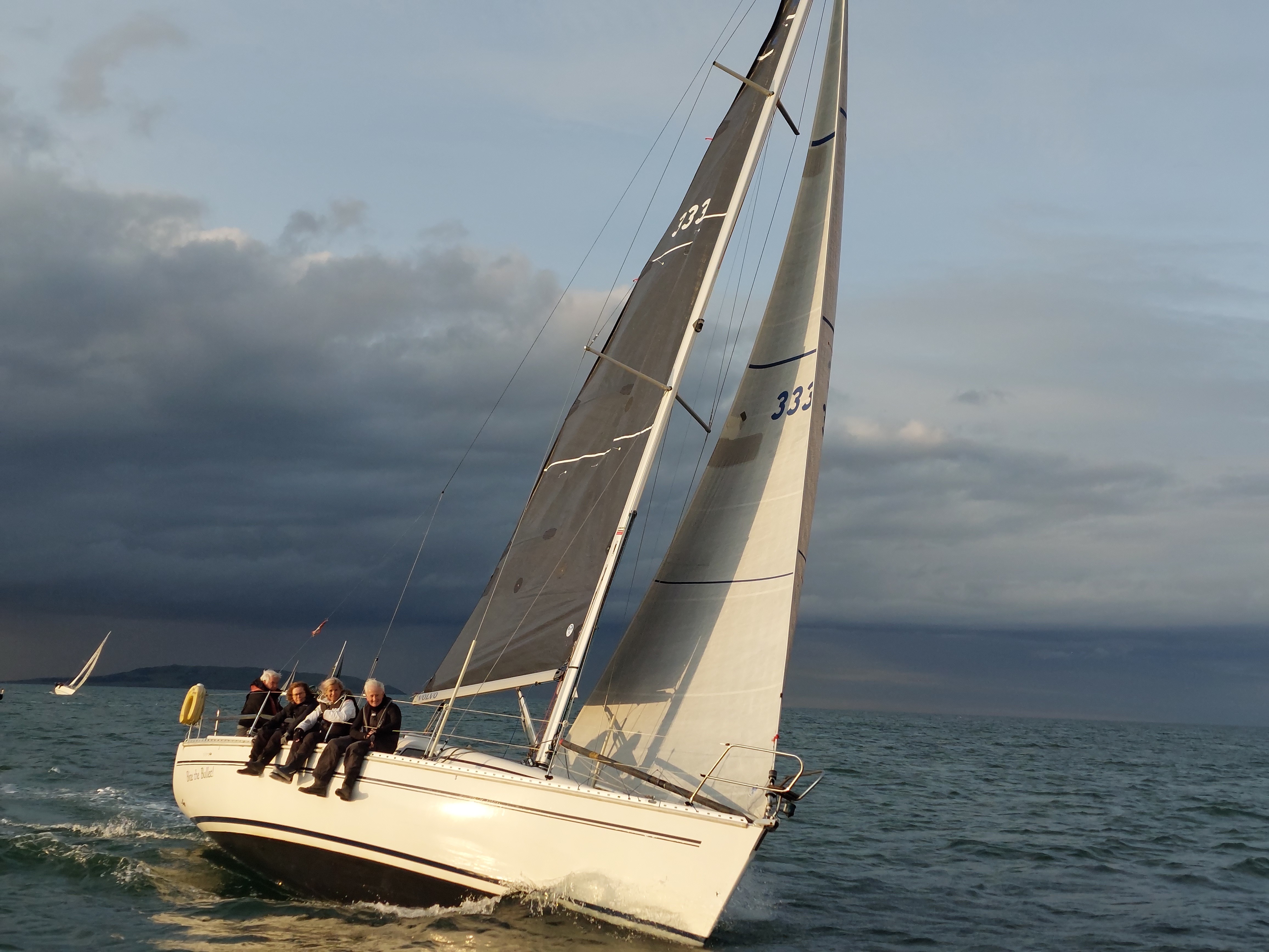 With the leftover bruises fading and repairs completed after the taxing wind and sea conditions experienced on the Lambay Races weekend, the 18 boat Wednesday night keelboat fleet enjoyed a fantastic night’s racing in much more benign weather. The wind ranged from 10 to 15 knots and was relatively steady in direction while the threateningly dark clouds skirted to the north of the race area.