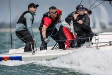 After flying in and registering on Monday the crew got aquatinted with the J70 for an open practice session in the afternoon. Monday morning was quite light but by the time we got on the water we were greeted with some beautiful Solent conditions of sunshine and 14-17 knots of breeze. A few hours of practice and honing some manoeuvres were mixed with some high speeds planning past Cowes harbour entrance. We headed back to the dock happy with the feel we had for the boat and a reasonable amount of confidence in our manoeuvres. Each of the well know clubs had sent strong teams that were peppered with some J70 regulars so we had to be content with a condensed practice leading into this competitive regatta.