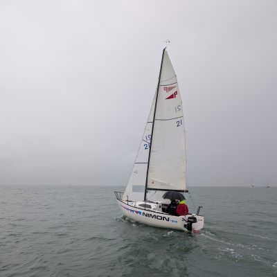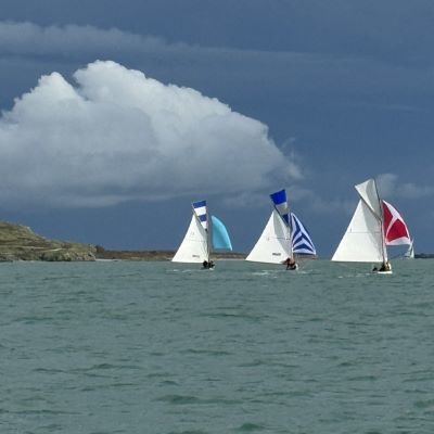 The Puppeteer 22s and Squibs completed two Windward-Leeward races to bring their count of races completed to five, assuring them of a discard over the series. Tom McMahon’s Squib, Tears in Heaven, saw its clean sweep of race wins interrupted by the victory of Kaizen (Ronan MacDonnell) in the first race while Tears for Fears (Niall Monks) added to its string of seconds. However, it was back to normal service for the second race with Tears in Heaven leading the fleet home again, chased by Kaizen. On HPH, Tears for Fears and Tears in Heaven each took a win while Kaizen was runner-up in both races.