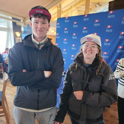Race 1 began cleanly in 15 knots. Conor Twohig and Matthew Cotter (HYC) led at the top mark and set off on a smooth spinnaker reach, chased by Noel Butler and Mark Greer (National YC), with David Evans and William Draper (Sligo YC) close behind. The HYC team battled a damaged kicker and a crew member nursing a dodgy hamstring. Ultimately, Noel and Mark took the win, with Conor and Matthew in second. Frank Miller and Marta Zamorano rounded out the podium. Special mention to David and William, who sailed a strong race until a mainsail halyard issue dropped them to seventh.