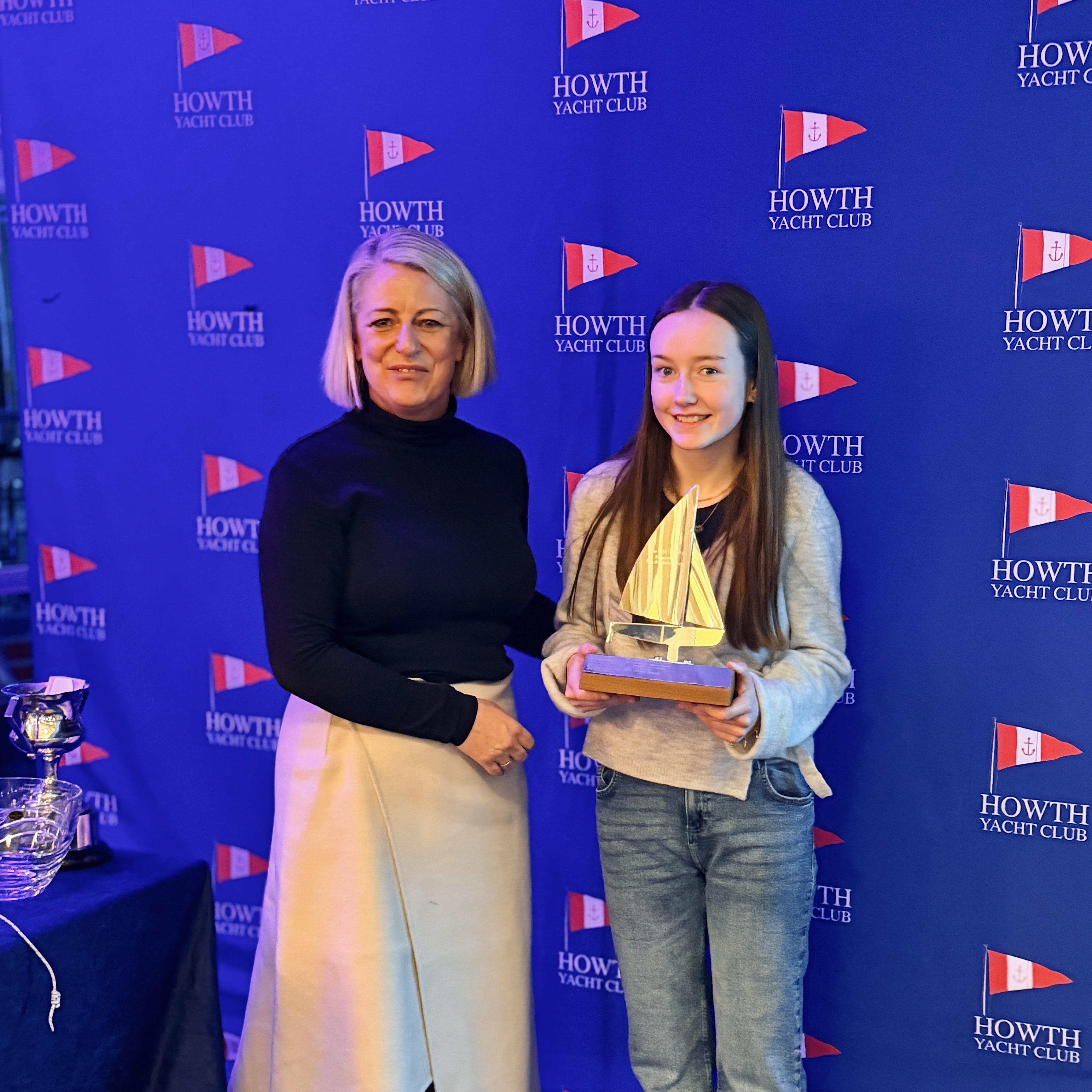 The 2025 trophy was awarded to Sienna Wright, following an outstanding year. Sienna won silver at the ILCA 6 Youth European Championships in Vilamoura, Portugal, claimed the Irish ILCA 6 National Championship title, and was Top Female and Top Youth at that event. She became only the third female sailor ever to win the Irish ILCA 6 Nationals outright and was also nominated as an Irish Sailing Champion.