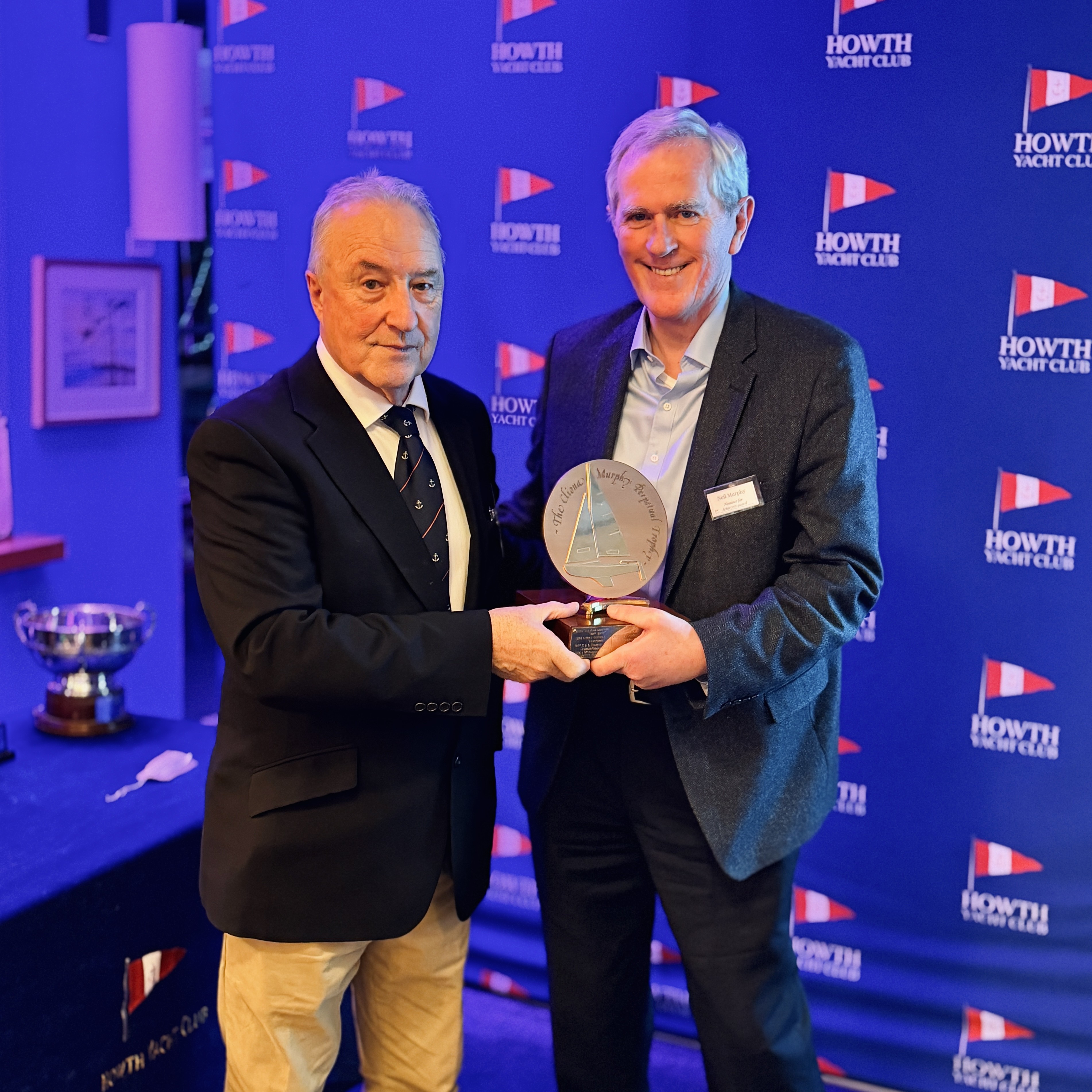 The 2025 recipient was Neil Murphy, whose decades of service include roles as Past Commodore, Past President of Irish Sailing, Past Sailing Committee Chair, and long-standing General Committee member. Neil continues to support the club through his involvement with Race Officer, Results, and Protest Committees.