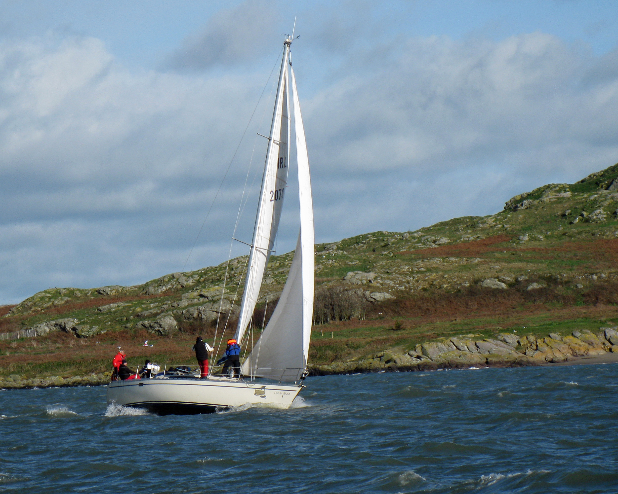 Day 4 of the Brass Monkey Spring Series, sponsored by Tadg Riordan Motors, got underway under typical winter uncertainty, with early morning rain prompting the North Star crew to don their wet weather gear once again. As the course was set, conditions improved, revealing a fresh West to Southwest breeze of 15 knots and a reasonably flat sea, with gusts reaching 20 knots. Race officials opted for Course No. 14, and all fleets managed a clean start on the ebbing tide.