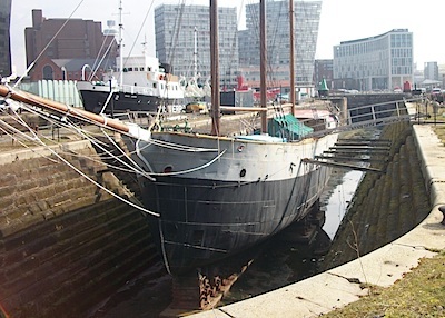 John had arranged for us to visit and board many of the exhibits not normally open to the general public including the “De Wadden” built in 1917. She was a trading ship that carried coal, timber, stone and grain between Liverpool and ports in Ireland between 1922 and 1961. She was the last ship on the Mersey to use sails.