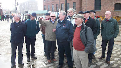 Top photo: The ROMEOs in Liverpool with Museum guide John Kearon