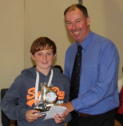 Below: Ben McDonald receives the Endeavour Trophy for his outstanding performance throughout the sailing season in Howth and 'on the circuit'.