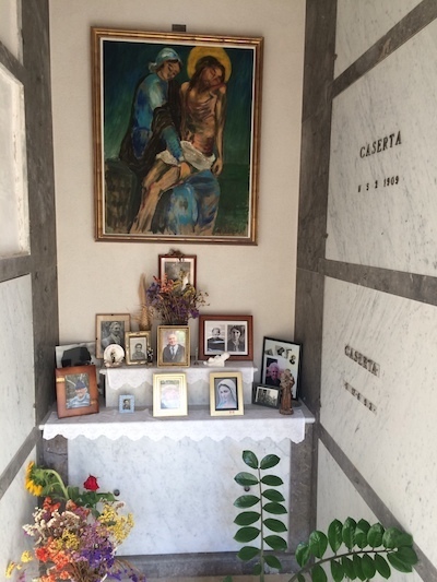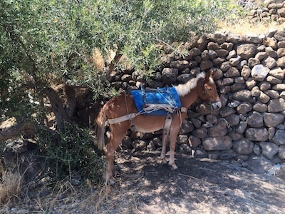 This island is no bigger than lambay, with a population of about 300, all living in the little village, we visited the local graveyard with fine tombs holding the bodies of generations of the various families, adorned with flowers and religous emblems, these people live long lives,many into their 100th year, I reckon the Mediterranean diet of fish as their staple diet and then siesta for a couple of hours after a meal must be good for you, nothing, and I mean nothing, happens out here between 12.30 and 16.00. If you ramble about the village during this time you see the parsiano's (shutters) all closed, windows and doors open, shaded by outside cortinas (curtains), silence everywhere apart from a bit of snoring, and tourists like us moving about the place.