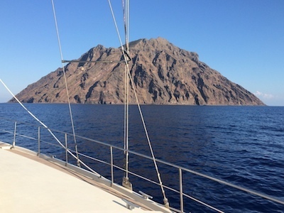We set sail for "Isola Ustica" a small island some thirty odd miles to the north of Sicillia in fresh W winds ( the Levante ) @ 18/25 kn but the sea was kind and we galloped along @ 7/8kn
