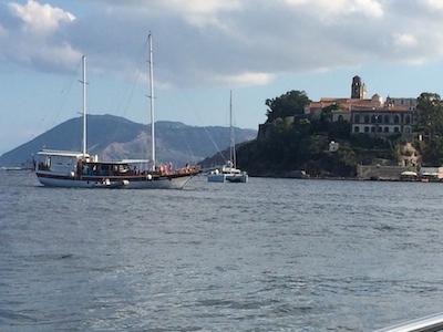 They also enjoy a good sea salt business, olives, fruit, and malavasia grapes. We were anchored at the toe of the volcano, it hisses and puff's all day , lighting up the sky at night, a great source of entertainment sitting on board at night.