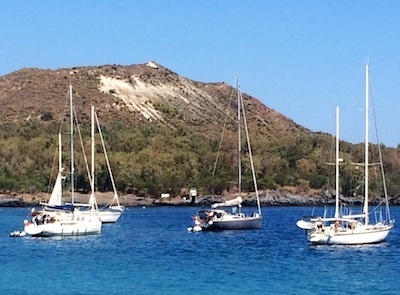 They enjoy a thriving tourist industry of mainly Italian and French elderly people, several large hotels that centre their business around the Natural open air sulphur baths, the sulphur seeps out from the volcano at ground level, Madre Di Dio, they stink to high heaven of raw sewage 24/7, the night we arrived off the beach we stayed on board, had dinner and hit the sack, the wind shifted, now I didn't know about any baths, I got out of bed at 03.00 cursing our sewage holding tank, thinking we had a leak, and lifting the cabin sole to see where the stink was coming from.