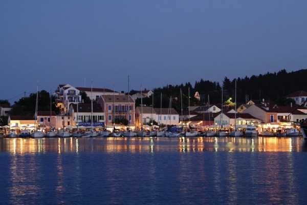 We closed the coast of Cephalonia at 05.00 on Sunday morning, it was pitch dark with not a light to be seen, I had thought we would get the shelter of the high rugged land from the wind which was now blowing at 40 plus kts but the wind was coming off the steep hills that sweep down to the sea at great force, we entered a large bay off Assos beach where I thought we could shelter, the waves thankfully now reduced in size to about 2 meters but it was not possible to anchor off in these conditions, it was too dark to move in any closer to the shore to find shallow water, I was never so disappointed, tired, wet, and weary from two days on the go, we hove-to in the middle of the bay to await the dawn in another hour, Linda put the kettle on while we worked out a plan to find a suitable place to go.