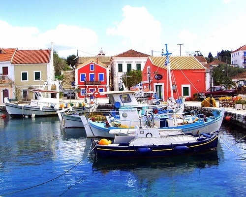 Linda got out the pilot book for the Ionian, and suggested we go to a little harbour 3m to the NW called Fiskardho, so I called up the Coastgaurd on the VHF to ask their advise on entering this little port in these conditions, we got no reply, but it turns out they could hear us, so Linda telephoned them in Athens, a gentle voice with excellent English answered, we told him we were holed up in a gale and asked about Fiskardho, he asked our position and call sign, he could now see us on the AIS, and asked us to hold on a minute after first taking our telephone number, he came back to advise that it would be safe to enter in this easterly gale, and that he would ring ahead for the port police to be on standby to assist us tie up, that we should keep a listening watch on channel 12 and 16 and call them up when we are at the port entrance.