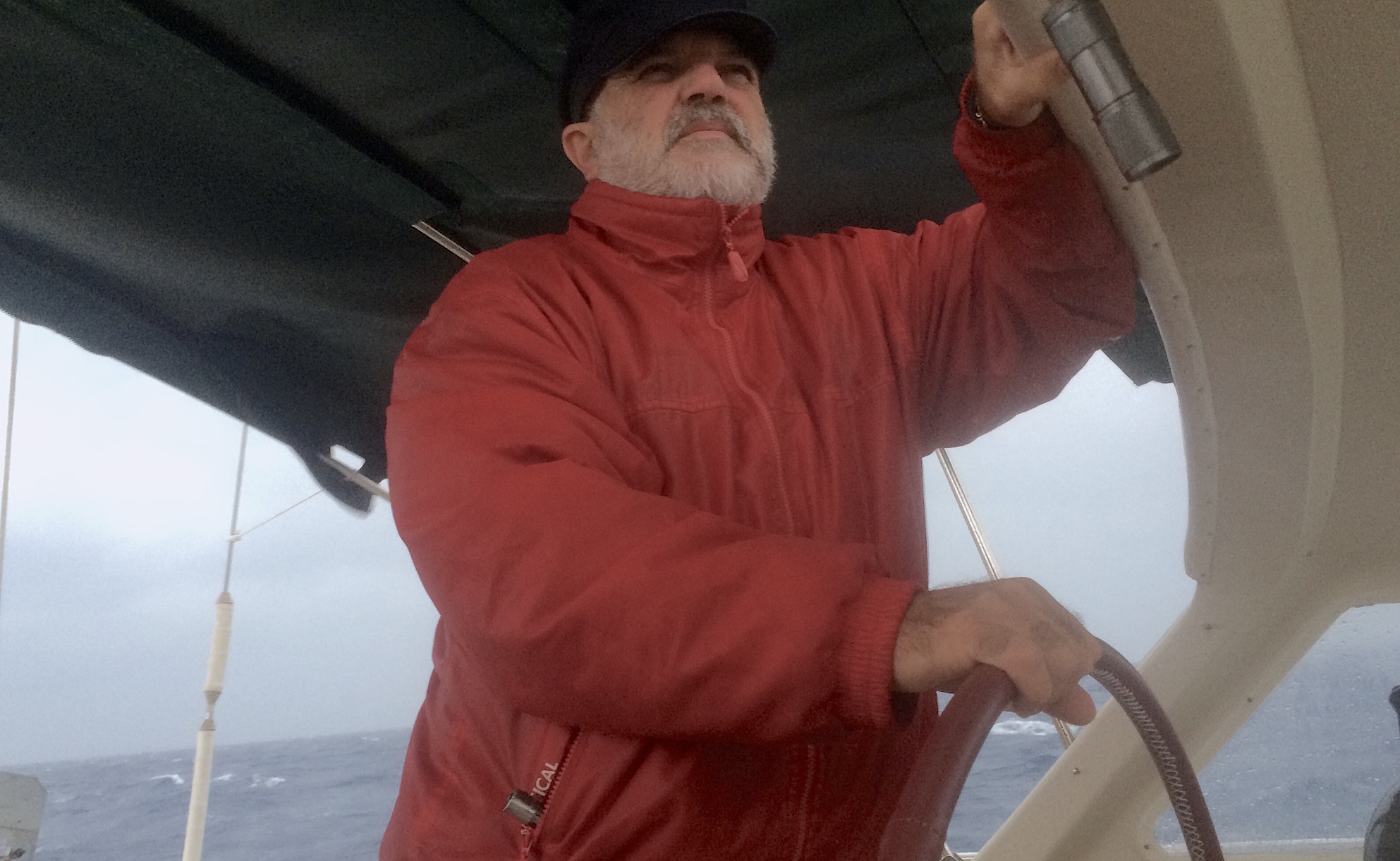 DeDanann will sit to windward very comfortably with the wheel tied off and just the mizzen set, as the wind tries to knock her off a wave the mizzen brings her back up, the Mediterranean fishermen use a mizzen for this purpose when hauling their nets, the wind meter was stopped at 50kts as we sat in the bay, the rain came down in buckets, our Bimini was torn off, we lost the cover of our new BBQ, the dinghy was flooded, conditions were worsening, but DeDanann was otherwise in good shape, I had prepared her well, lashing anything that could move, halyards tidied etc, her crew were not so good mind, we weren't out of trouble yet ?