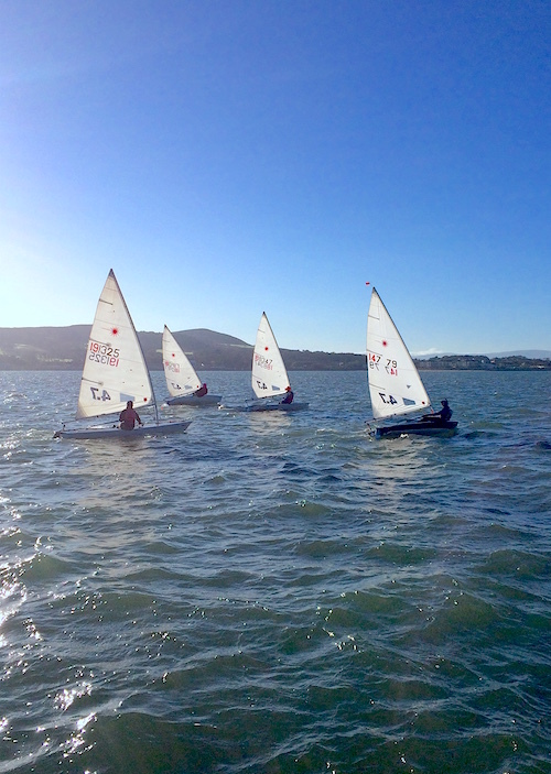 The fourth day of the Frostbites Laser Winter Series started in 12 knots of wind from the west, brilliant sunshine with a sharp chill in the air and a strong ebb tide. Twenty-six Lasers competed on Sunday with the welcome return of the handsome Dan O'Connell and the brave but injury plagued Dave Mulligan.