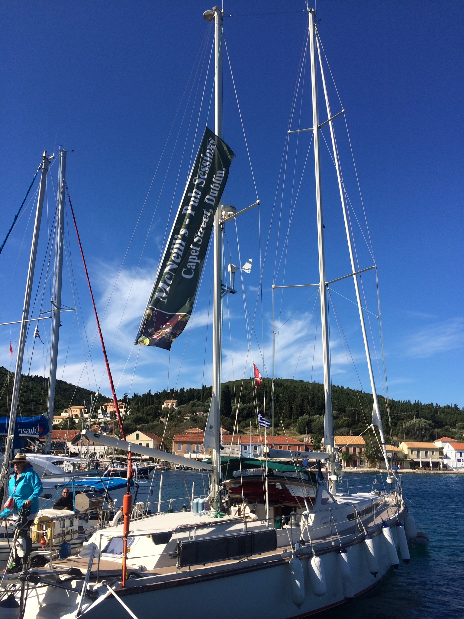 We arrived from Sicilia at the little port of Fiskardho,  on the island of Cephalonia (Nisos Cephalonia) in the early hours of Sunday 4th October, having spent thirty hours riding out an easterly gale, the weather remained bad for several days with high winds and torrential rain pouring down upon us, the port was full to capacity with boats sheltering from the severe conditions outside. Despite the bad weather there was a great buzz about the port with crew from all over the world sitting about the little cafe's and taverna's making the best of things, great drinking sessions, and good banter went on till the early hours each day, the local business people love the odd bout of bad weather.