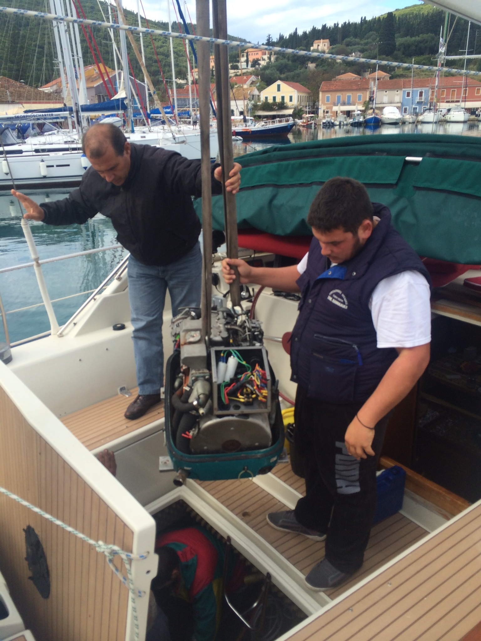 The local engineer, Aleco, did a grand job of replacing the generator, a real family affair with brothers, sons and cousins all helping out, but they knew their stuff for sure. I also serviced the Perkins Diesel engine and gearbox myself, thankfully it survived the water.