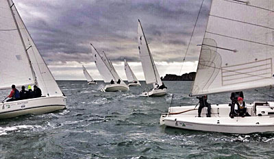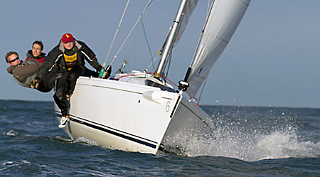 The day began with the 16 class representatives and their crew being split in to two eight boat fleets. Due to the forecast weather conditions for Sunday, the decision was made to sail two races in each fleet in the morning with the top four teams from each progressing to the Final Series which would take place in the afternoon. Sailing in the Irish Sailing Association’s J80 keelboats, the first eight teams took to the water for a 10.30am start in a 15 knot south-westerly. Leading the fleet in the first race was SB20 champion Ben Duncan who took the bullet followed by Ian Matthews from the National Yacht Club in Dun Laoghaire and John McGuinness from Moville in Donegal. It was local Howth Yacht Club sailor Cillian Dickson who took the win in the second race followed by Ben Duncan with Ian Matthews in third. On a total of 3 points, Ben Duncan and crew Joe Turner and Davie Taylor were the overall winners of the first fleet earning their place in the afternoon’s Final Series. Also progressing to the Final were Ian Matthews (5 points), Cillian Dickson (6 points) and John McGuinness (8 points).