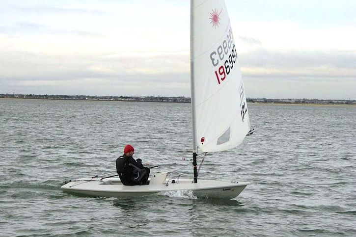 The dedicated Laser sailors of the Howth Frostbites launched in less than 5 knots and sailed a long downwind to the start line. The Race Committee raised the AP flag in the hope that the forecasted breeze would fill in from the West.