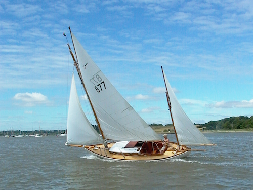 Sheila, the 25ft classic yawl which came second in the Lambay Race of 1921. She has been immaculately restored and maintained in the same ownership in Suffolk for 38 years, and is currently for sale.