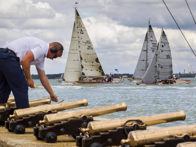 (Top photo: Stephen O'Flaherty's 'Soufriere' powers away from the Cowes startline at last years Classics Regatta, this week she will be racing against a more modern-style fleet)
