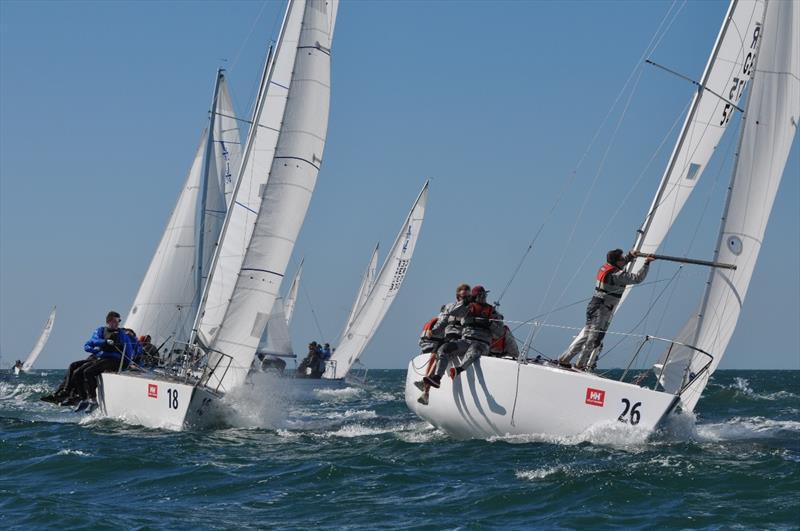 From the previous week we knew that a big wind was forecast for the event; the real question was whether or not it would be sailable. The fact that the wind was offshore meant that there was no opportunity for a big sea to develop and combined with an even worse forecast for the rest of the week the race committee sent us out. The was no argument in the sail choice, with all boats opting for the jib over the genoa. After a quick practice race we decided to depower by tightening the rig up to the second highest setting, we felt comfortable going upwind in the lulls and were able to keep the boat flat in the gusts by playing both the main and jib sheets.