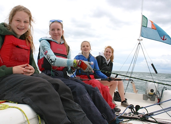 On Monday of last week, the Keelboat Adventure Course sailors were working on their boat handling skills including picking up a mooring and man overboard drills. On Tuesday the crew headed over to Malahide Marina for a picnic lunch (while the Squib sailors stayed ashore to play golf). On Wednesday the sailors planned and carried out their own trip, which included sailing to Greystones via the Royal St. George Yacht. This was followed on Thursday by fast cruise home with up to 10.7 knots being recorded on the gps despite a strong ebb tide. Most of the teaching points in this course were covered during the various planned trips and the remainder were completed on the final day before the issue of certs to the successful participants. Judging by the demonstrations of boat speed and boat handling, we may have a few future members of the K25 Squad in the making! Well done to Lara Jameson, Isabel Cahill, Megan Cahill & Kevin O’Connor.