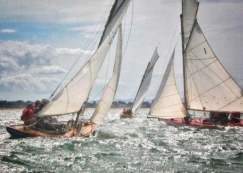 Downwind sailing in a Howth 17 is always a 'straight-line' affair, with almost 18 foot of boom fully extended and a further 10 foot of spinnaker pole was encouraging the boats to roll precariously in the fresh south-easterly. But the senior members of the class revelled in the conditions, including 'Echo's' Bryan Lynch who's steadiness of foot on the foredeck of his 101 year-old classic left many of the more youthful crews aghast in admiration. His crew also managed to drop the topsail at sea before the final race and as the wind freshened further - no mean feat on these boats.