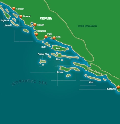 We would have liked to hang about here a few more days, but our eldest son Eoin and his girlfriend Ciara were coming to Split to join us for a forth nights cruising and we had to get going, so up with the anchor and off we set for the large island Otok Brac (Brach) and the port of Milnij, some 45 miles distant, there are two marinas in the port, ACI and Marina Vlasko, we went to Marina Vlasko, very tight for DeDanann to manoeuvre, but the wind was light and we managed it, €120 a night with crap facilities on floating pontoons that jump up and down every time a motor boat would pass through the port, we should have really went to the ACI Marina for the same money.