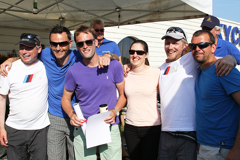 of the judging committee, truly personifies the spirit of the class in that season. For their never ending enthusiasm, their commitment to their beautiful boat and their determination to throw themselves into every Half Ton event wholeheartedly, this year’s recipients of the True Spirit Trophy are Jean-Luc Courbon, Jean Marty, Richard Carlie, Pierre-Yves Danet, Helen Frouin, Paul de la Renardiere and Louison Le Scouarnec of the 1988 Andreiu designed Half Capone – names after the famous American gangster who also inspires the crews crew uniform. The ladies of the KYCN shoreteam helped to decide the winner and came armed with water pistols and handcuffs to round up their man!