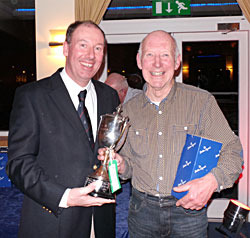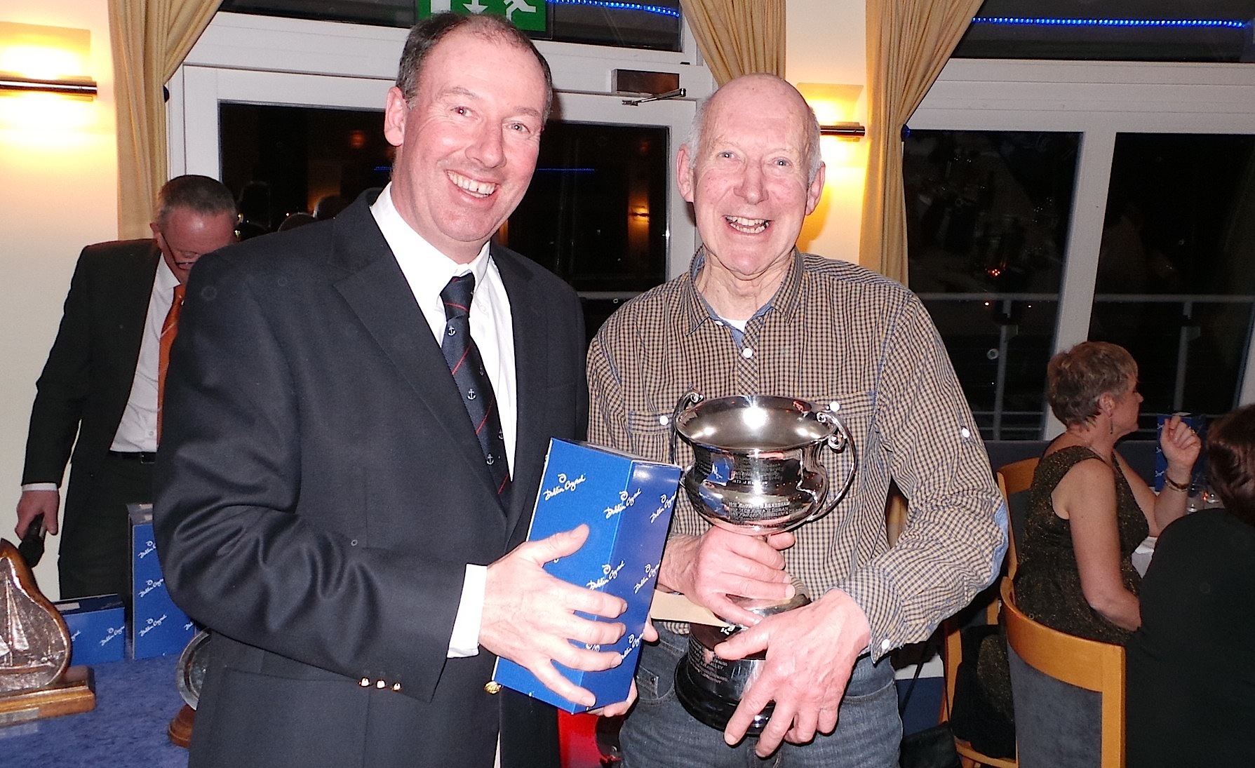 Commodore Brian Turvey presents the Follenus Cup to Lionel McMurtry from Class 3. This prize giving and dinners combined the Class 3 and White Sails classes and was organised by Eddie Bourke and Colm Bermingham.