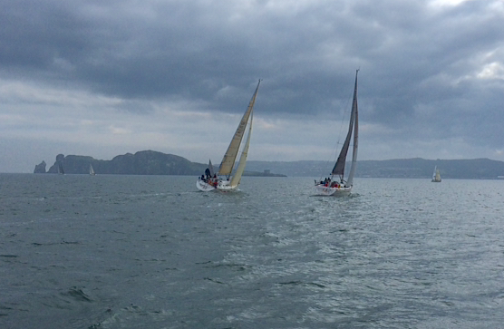 The committee boats, Star Point and Sea Wych trundled out to the race areas with postponement flags tied to halyards ready for deployment. Race Officers Derek Bothwell and Richard Kissane were not going to be beaten by Mother Nature. The pair huddled (Over VHF) and whatever voodoo they dealt in worked. A reasonably steady 7 kts from the South East slipped over the sea.