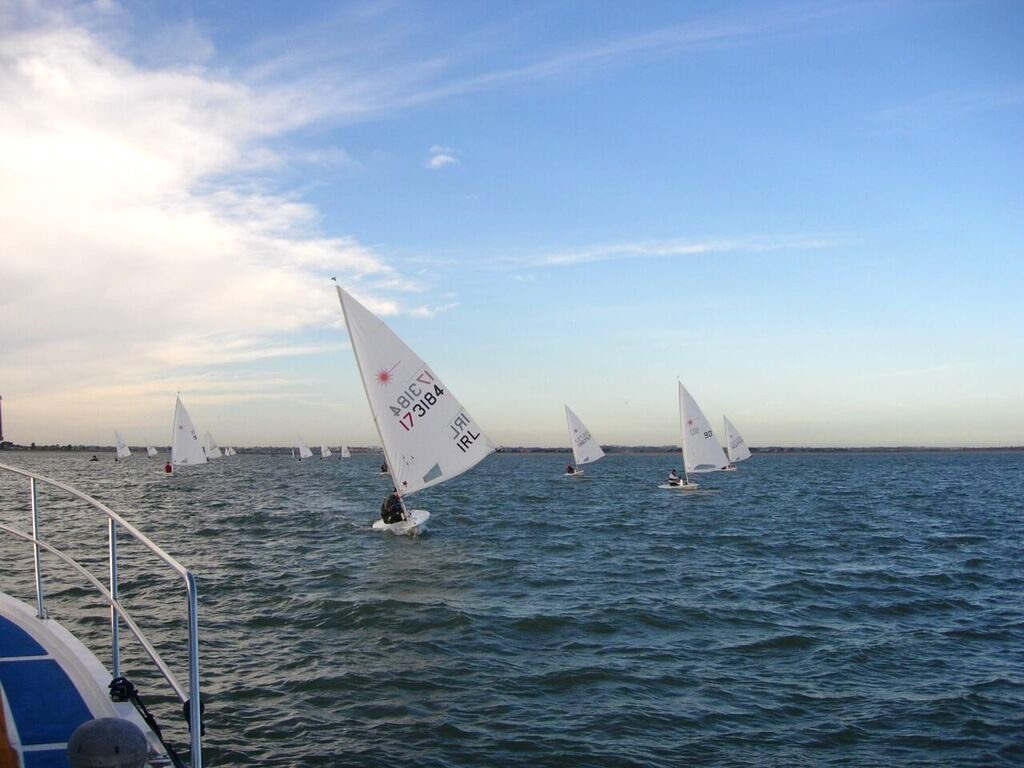 Storm Desmond finally moved away and left behind a perfect Sunday morning for Laser racing in Howth YC. The 14knot westerly made it the most benign sailing day of the entire series to date and, with only three of the scheduled ten racescompleted, three starts were planned to try and catch up.