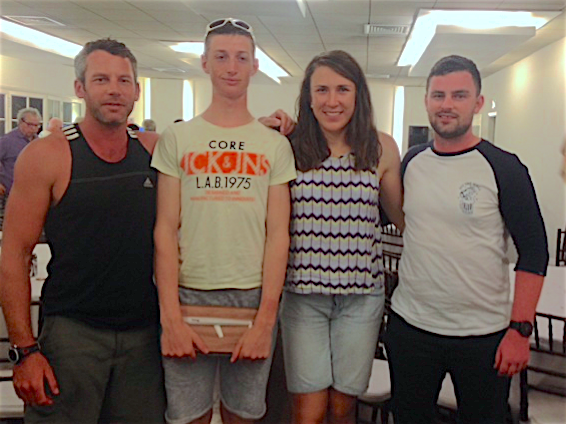 Even though Annalise and I were competing “against” each other, we were able to combine thoughts and analysis from each race, therefore both gaining a better understanding of that particular course which will be useful ahead of the Olympics. Actually one of the days the wind was blowing lightly from the north, which was odd, but Annalise pointed out that the planes would be landing just in front of our windward mark. Therefore whoever got into the airplane gust first would gain about 100 meters on the rest of the fleet. This certainly came in useful that day. I finished the event on a high placing 8th overall, 3rd male and first under 19. We had a fun and eventful prize-giving with free pizza and beverages, much to Ronán’s (Nutritionist) despair!